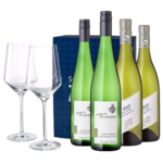 Saftige Birnenfrucht und nach hinten heraus das berühmte „Pfefferl“, die pikante Note von weißem Pfeffer - mit diesen Attributen hat sich der Grüne Veltliner seinen Platz unter den internationalen weißen Edelreben erobert. Mit dem „Haid“ von Roman Pfaffl aus dem Weinviertel, 92 Punkte vom Falstaff, und dem „Kogl“ von Meinhard Forstreiter aus dem Kremstal, 91 Punkte vom Falstaff, vereint das Paket zwei herausragende Vertreter des Jahrgangs 2019 und die passenden Gläser.