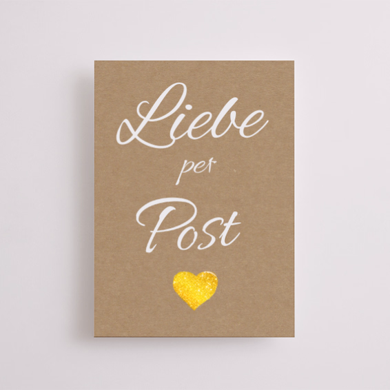 Verschicke „Liebe per Post“ an deine Liebsten. Diese Grußkarte zeichnet sich durch das Naturpapier und dem goldigen Herzaufdruck besonders aus.