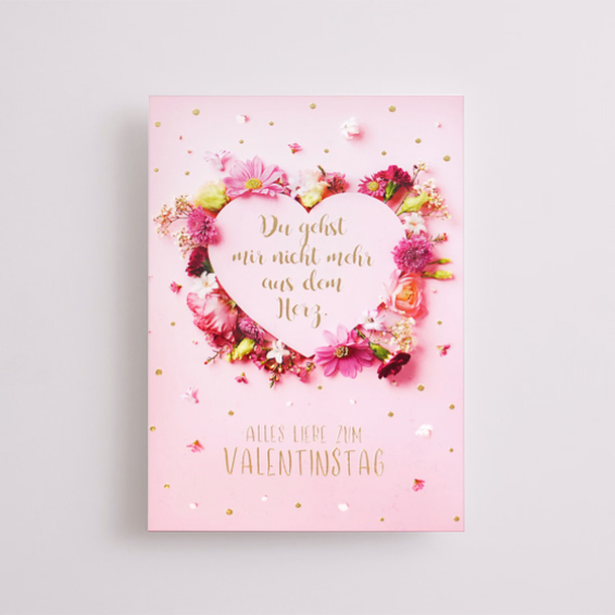 Die Motivkarte „Du gehst mir nicht mehr aus dem Herz“ ist die perfekte Liebeserklärung zum Valentinstag. Die Karte ist aus hochwertigem Papier gefertigt und hat ein schönes, romantisches Design.