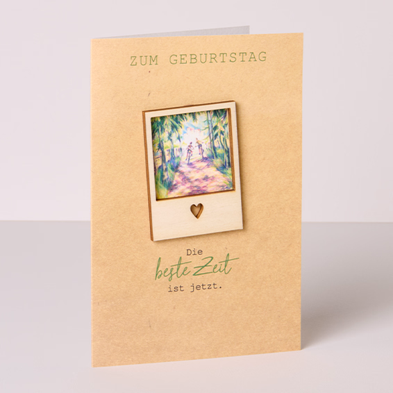 Diese Motivkarte „Zum Geburtstag - Die beste Zeit ist jetzt“ ist mit schönen, schwungvollen Schrift gestaltet und lässt die Karte besonders freundlich und einladend wirken. Die perfekte Wahl für alle, die jemandem eine große Freude bereiten und alles Gute zum Geburtstag wünschen.