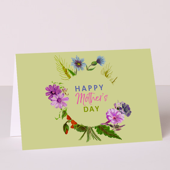 Eine hochwertige Grußkarte mit der Aufschrift „Happy Mother’s Day“.
