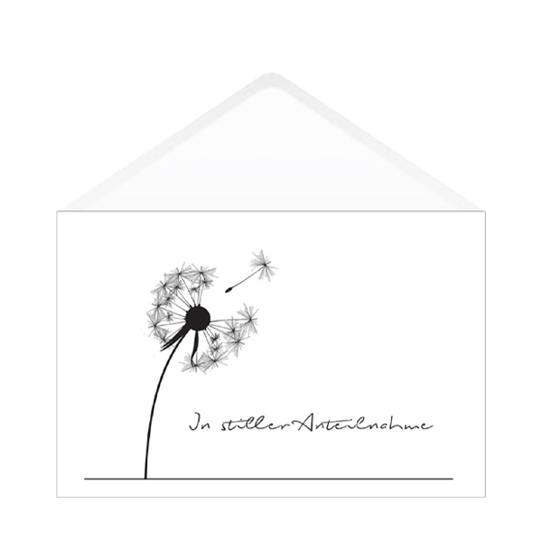 Deine dekorative Motivkarte „In stillem Gedenken“ mit einem gestalteten Umschlag mit dem Text „In stiller Anteilnahme“.