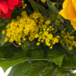 Der Blumenstrauß Blütenfee kommt mit gelben Rosen, roten Germini, blauer Statice, Solidago, rotem Hypericum, Bupleurum, Lederfarn, Pistochia und Salal. Durchmesser ca. 30cm. Frisch für Dich zusammengestellt, mit Pflegetipps, Blumennahrung und Wasser versorgt.