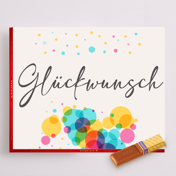 Ob zum Geburtstag, zum Jubiläum, zum Abschluss oder einfach nur so – diese 250 g Merci-Packung mit der Aufschrift „Glückwunsch“ passt zu vielen schönen Anlässen. Acht leckere Schokoladensorten machen Deine Glückwünsche besonders genussvoll. Ein süßes Geschenk, das von Herzen kommt.