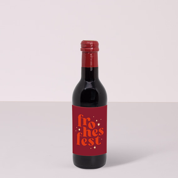 Aromatisch, würzig und perfekt für kalte Wintertage! Dieser 0,25 l Glühwein im festlichen „Frohes Fest“-Design ist ideal zum Verschenken – ein kleiner Schluck Weihnachtszauber in jeder Flasche.
