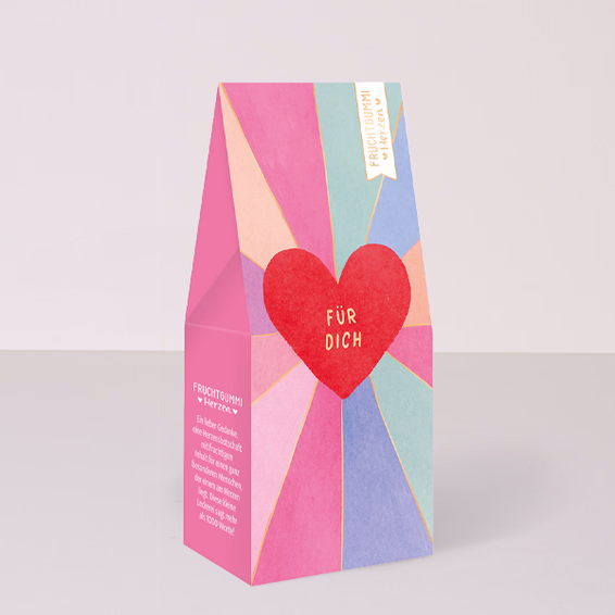 Süßer Gruß mit Herz! Unsere 70 g Packung Fruchtgummis „Für Dich“ ist die perfekte kleine Aufmerksamkeit, um jemandem den Tag zu versüßen. Bunte, fruchtige Leckerbissen in liebevoller Verpackung – ideal zum Verschenken und Überraschen.