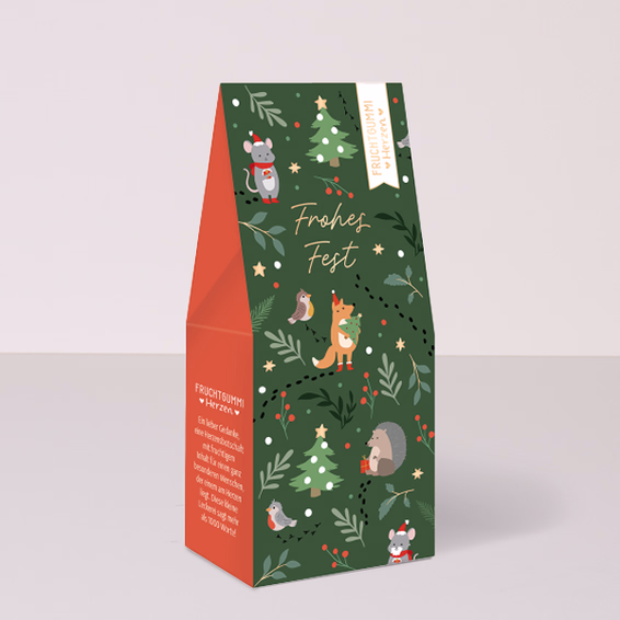 Diese Fruchtgummis mit der Aufschrift „Frohes Fest“ bringen süße Weihnachtsstimmung auf jeden Tisch. Mit ihrem festlichen Design und intensiv fruchtigem Geschmack sind sie das ideale kleine Geschenk, Mitbringsel oder Genussmoment in der Adventszeit.