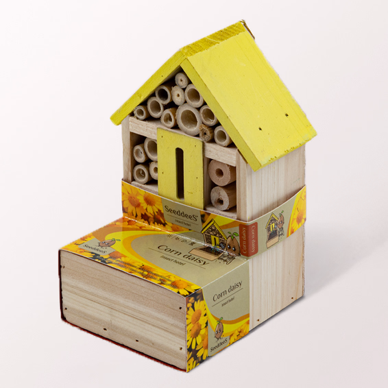 Dieses liebevoll gestaltete Insektenhotel aus natürlichem Holz bietet Wildbienen und anderen nützlichen Garteninsekten einen geschützten Nist- und Rückzugsort. Die Kombination aus verschiedenen Naturmaterialien schafft optimale Bedingungen für kleine Bestäuber und unterstützt aktiv die Artenvielfalt in Ihrem Garten, auf dem Balkon oder der Terrasse. Besonders praktisch: Ein integrierter Pflanztopf mit Samen eines Gänseblümchens sorgt für eine zusätzliche Nahrungsquelle und verwandelt das Insektenhotel in ein kleines, lebendiges Ökosystem. Dekorativ, nachhaltig und sinnvoll – eine wunderschöne Möglichkeit, Naturerlebnis und Umweltschutz miteinander zu verbinden.