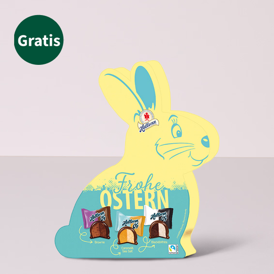 Der Halloren Osterhase (145 g) ist die perfekte süße Überraschung zu Ostern. Im Inneren warten 14 köstliche Halloren Kugeln in drei beliebten Sorten: