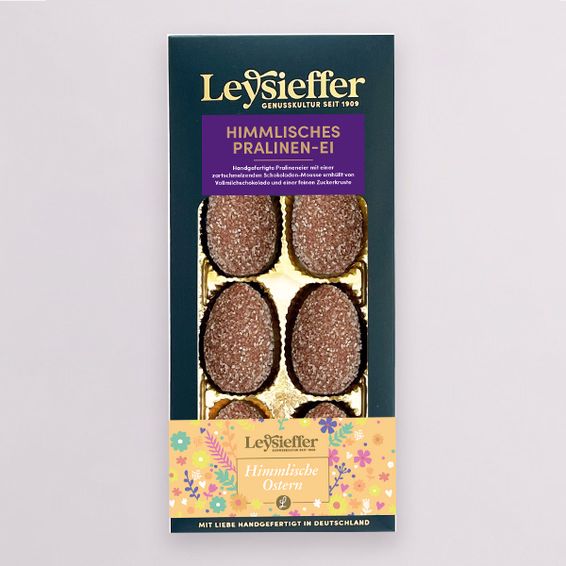 Ein wahres Meisterwerk aus feinster Schokolade – das „Himmlische Pralinen-Ei“ von Leysieffer! Diese edle Pralinenpackung vereint köstliche Pralinen in einer zauberhaften Ei-Form und sorgt für ein himmlisches Geschmackserlebnis. Perfekt für Schokoladenliebhaber und ein außergewöhnliches Geschenk zu Ostern. Jede Praline ist ein kleines Kunstwerk und verspricht höchsten Genuss!