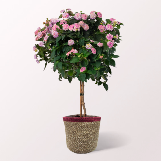 Das hübsche Wandelröschen (oder auch Lantane) in Pink präsentiert sich als Stämmchen in einem passenden Korb (ca. 17 cm).