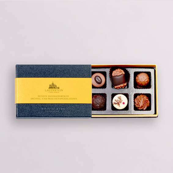 Filled with an exquisite choice of truffles and pralines. Each more