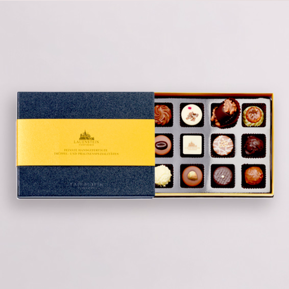 Filled with an exquisite choice of truffles and pralines. Each more