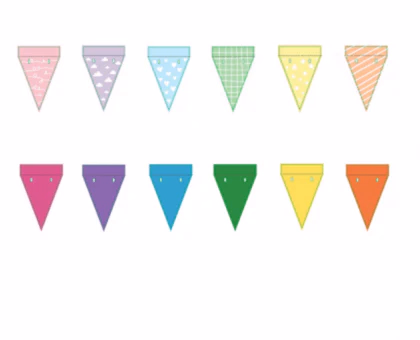 On this pennant garland cardboard pennants are printed both on the front and back side.