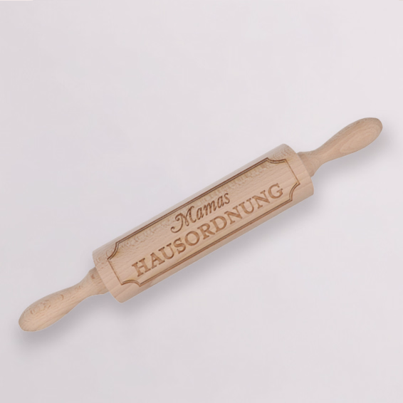 Surprise your mother with this practical rolling pin. With the inscription „Mamas Hausordnung“ (Mom's house rules), it is perfect for everyday use in the kitchen or as a decorative element.