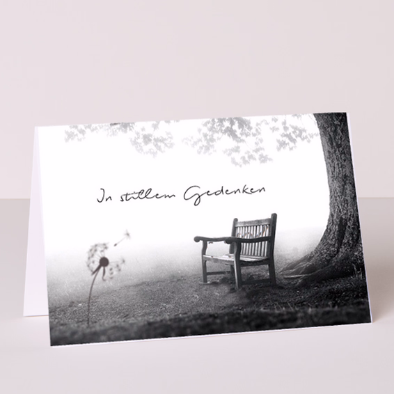 Your decorative motif card „In stillem Gedenken“ (In silent memory) with a designed envelope with the text „In stiller Anteilnahme“ (In silent sympathy).