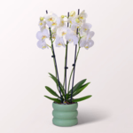 Beautiful orchid "Cascade" in light pink in a decorative ceramic pot. The special feature: the shoot of the orchid was pulled in a bow. Size about 60 cm. With detailed care instructions.