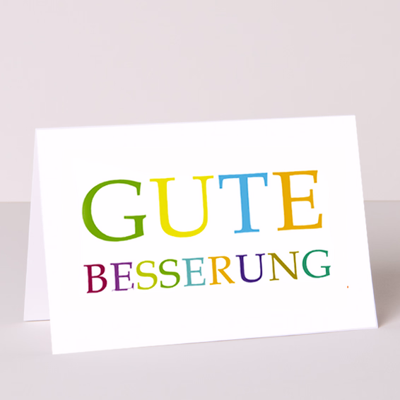 Floral greeting card sunflowers with the inscription „Gute Besserung“ (Get well soon).