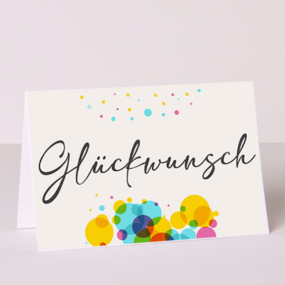 Modern greeting card with the inscription „Glückwunsch“ (Congratulations).