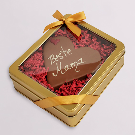 A sweet token of love for the best mom in the world! This melt-in-the-mouth heart cake with a fine milk chocolate coating and the loving inscription „Beste Mama“ (Best Mom) is the perfect gift for Mother's Day or just in between - because mom always deserves something special!