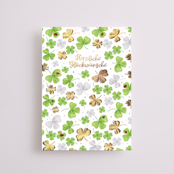 Give the gift of happiness! This lovingly designed greeting card with the inscription „Herzliche Glückwünsche“ (Congratulations) and lots of delicate clover leaves brings joy and good wishes for every occasion – charming, fresh, and full of positive energy.